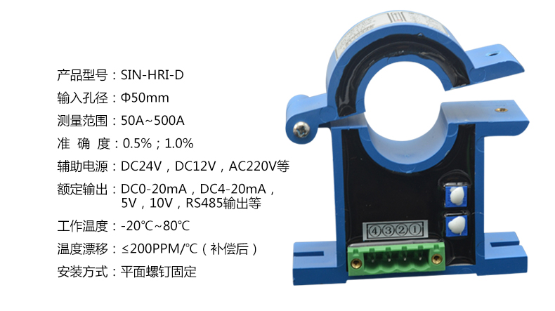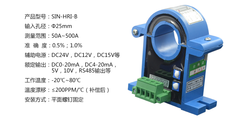 電流變送器可以直接將被測(cè)主回路交流電流或者直流電流轉(zhuǎn)換成按線性比例輸出的DC4~20mA(通過250Ω 電阻轉(zhuǎn)換DC 1~5V或通過500Ω電阻