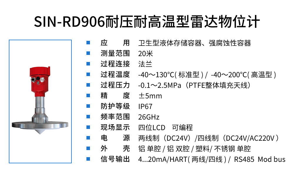 90 系列傳感器是 26G 高頻雷達(dá)式物位測(cè)量?jī)x表,測(cè)量最大距離可達(dá) 80 米。