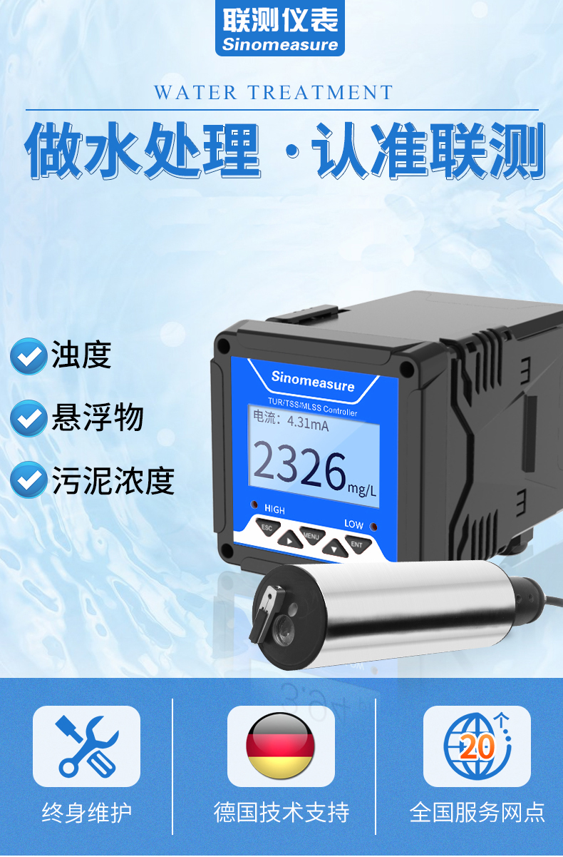 濁度/污泥濃度傳感器的原理基于組合紅外吸收散射光線法