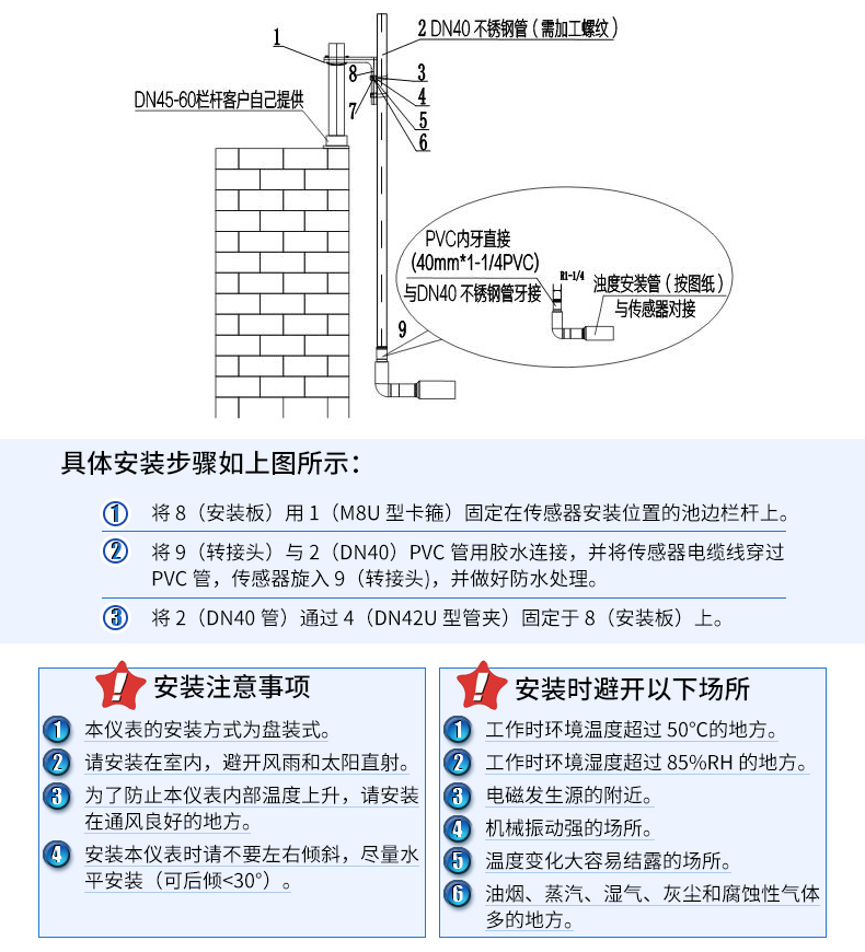 濁度/污泥濃度傳感器的原理基于組合紅外吸收散射光線法,應用 ISO7027 方法可以連續并精確地測定濁度或污泥濃度。